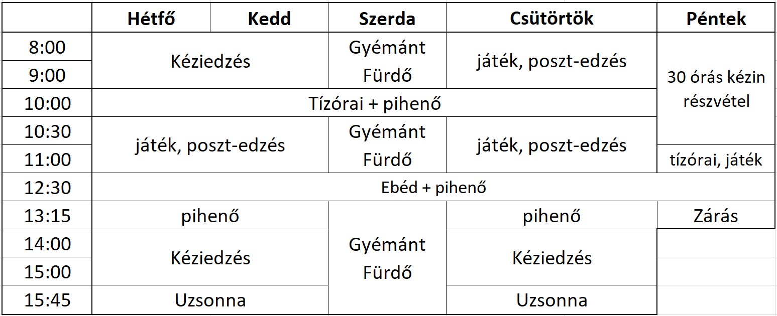 A tábor napi időszaka: 08:00 - 16:00 óráig.